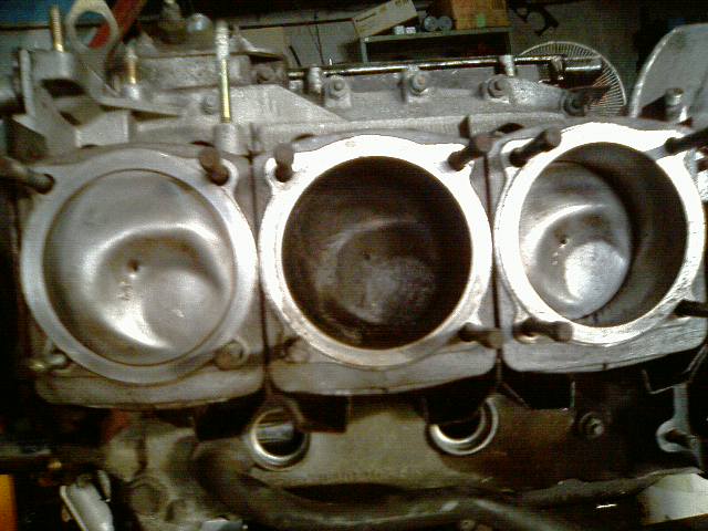 左右は掃除した後、真ん中がきれいにする前の汚れたピストン。